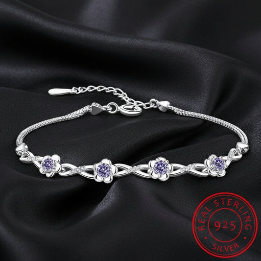 Elegant Flower Bracelet – 925 Silver with Zircon Stones