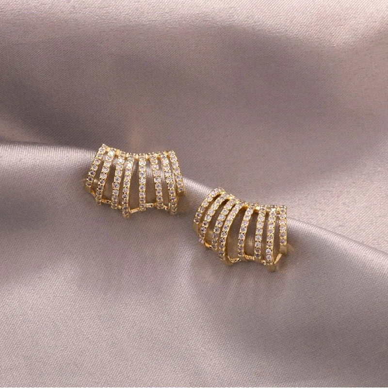Gold Crystal Inlaid Metal Stud Chick Earrings
