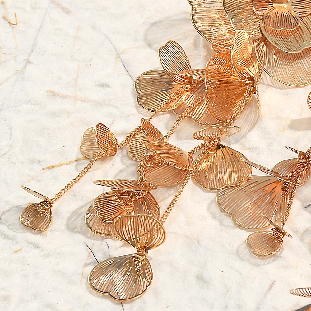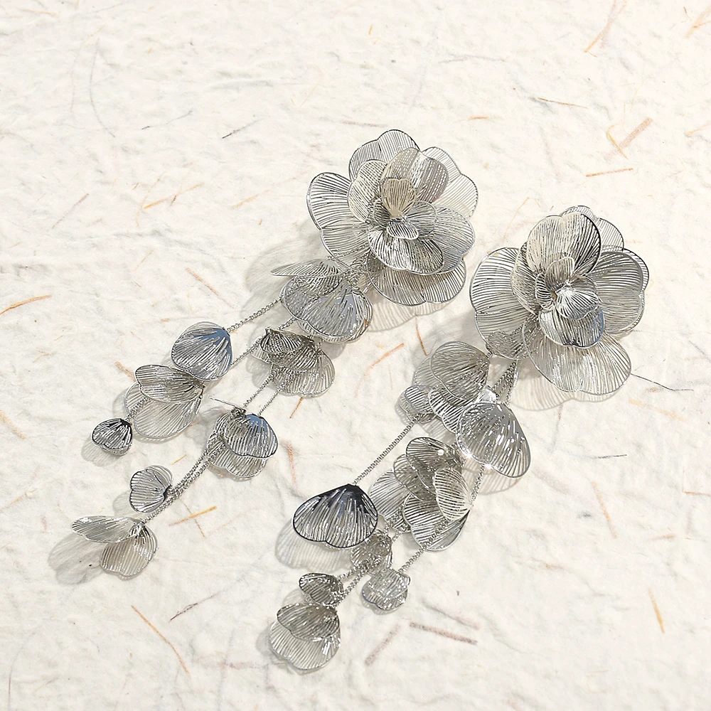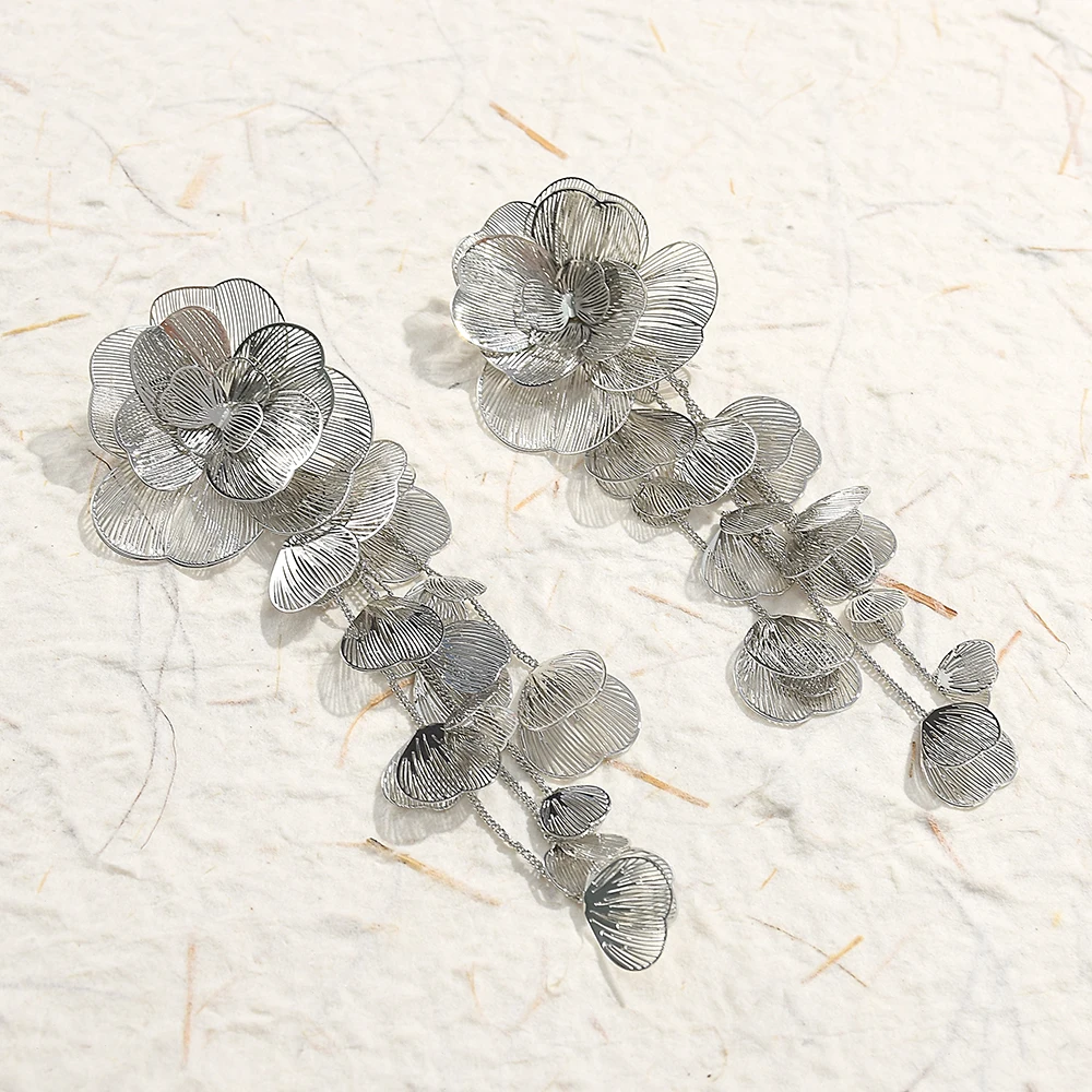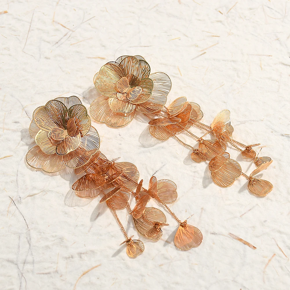 Radiate elegance with the Exaggerated Flower Long Metal Dangle Earrings, a bold fusion of artistry and fashion. Crafted in shimmering gold color, these luxury statement earrings feature intricate floral designs that cascade gracefully, creating movement and sparkle with every step. Their elongated silhouette adds dramatic flair, making them the perfect fashion jewelry choice for women who love expressive style. Lightweight yet eye‑catching, the flower dangle earrings embody sophistication and individuality, elevating both casual and formal looks. Designed to capture attention, they reflect light beautifully, turning each gesture into a poetic expression of confidence and charm. Whether worn to enhance everyday outfits or paired with glamorous ensembles, these unique floral earrings symbolize beauty, resilience, and timeless femininity. Add them to your collection and let your jewelry bloom with luxury, artistry, and radiant allure.