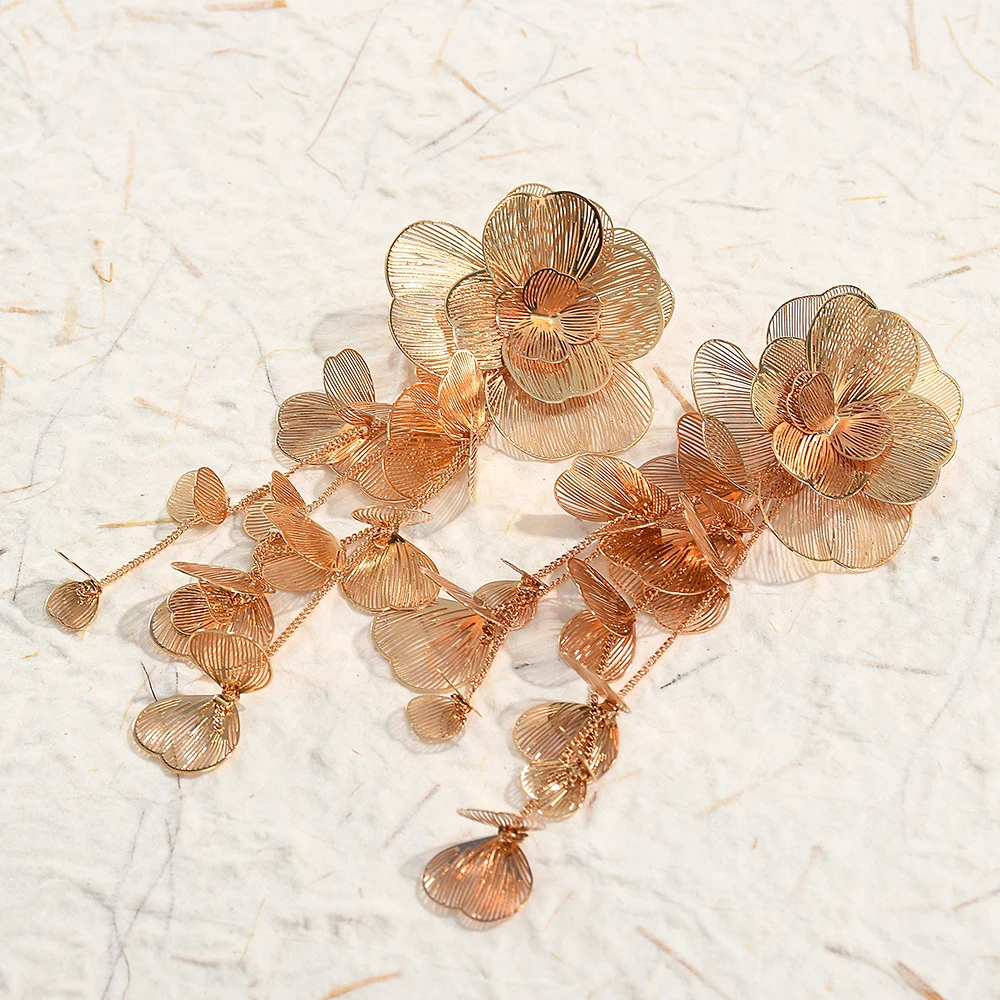 Fashion Gold Floral Long Drop Earrings for Women