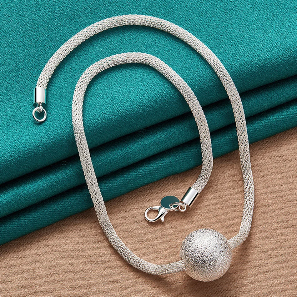This 925 sterling silver necklace features a striking 20mm matte ball pendant suspended from a smooth 4mm snake chain, creating a sculptural silhouette that’s both modern and timeless. Its clean lines and satin finish evoke quiet luxury—perfect for women who favor understated elegance with a touch of edge.