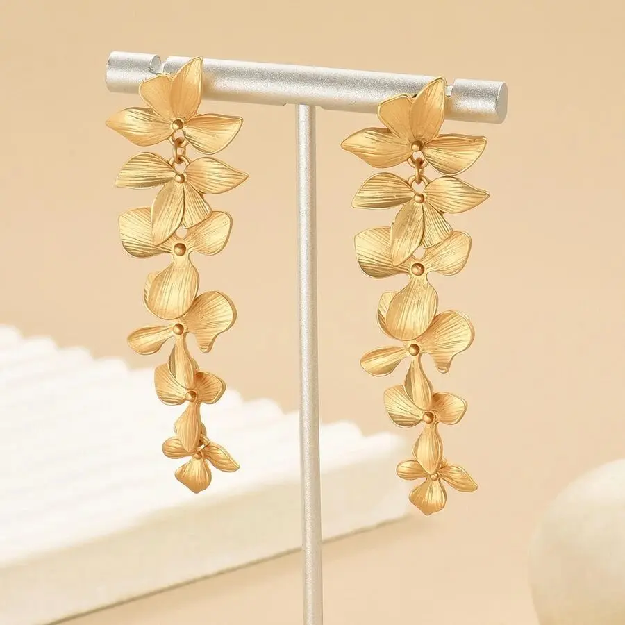 Charming Gold Leaf Flower Cascade Earrings