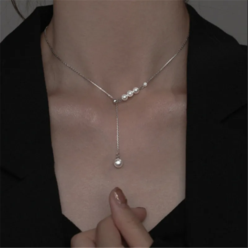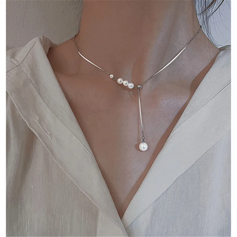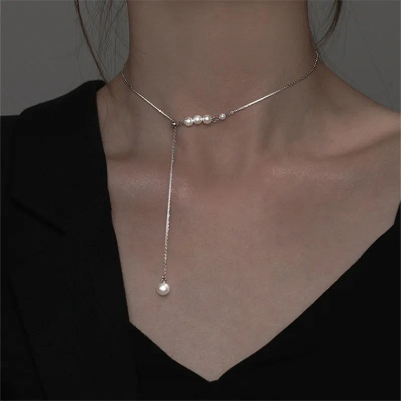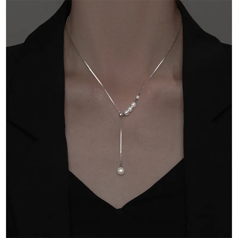 This 925-sterling silver necklace features a cascading tassel chain and luminous pearl charm, designed to evoke fluidity, femininity, and timeless sophistication. Whether worn as a choker or layered pendant, it adds a refined touch to bridal looks, evening wear, or everyday romance.