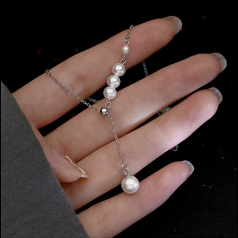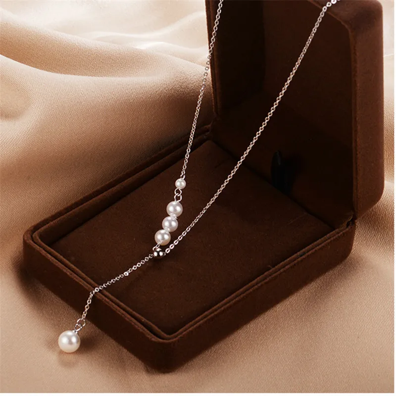 Sterling Grace – Long Chain Pearl Pendant Necklace