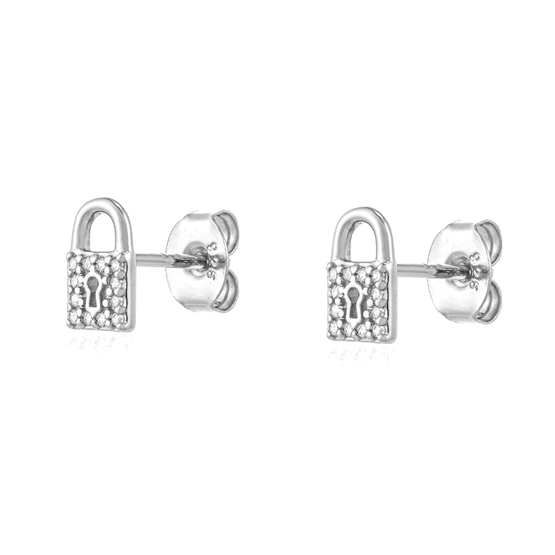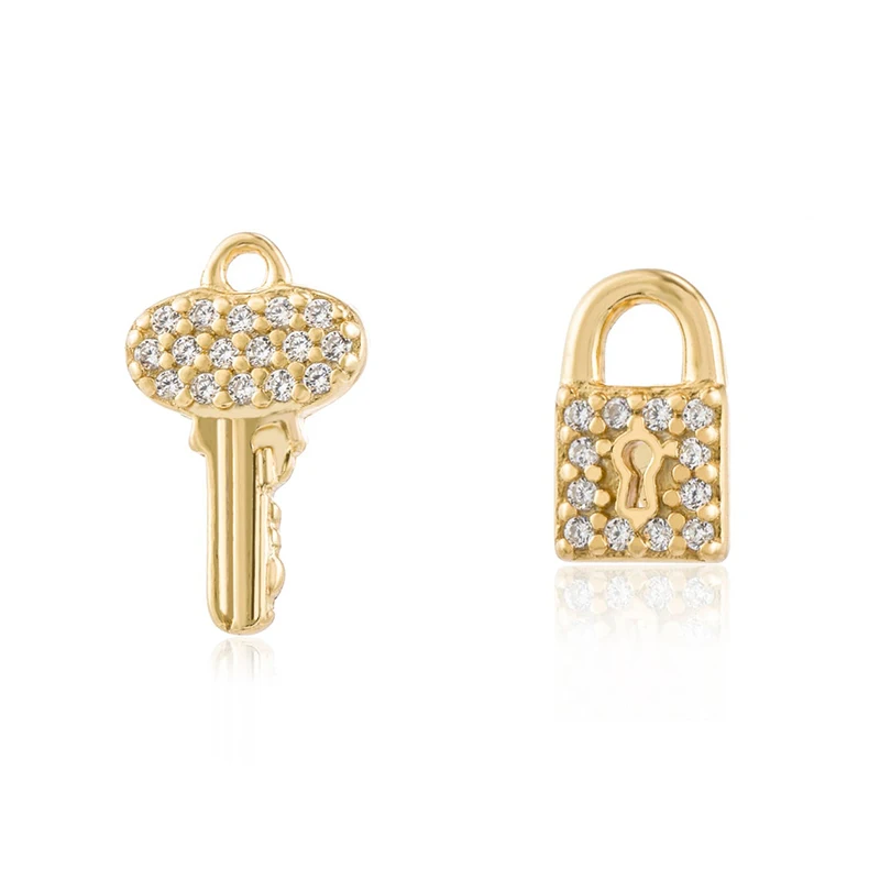 Unlock Elegance: Zirconia Lock & Key Stud Earrings